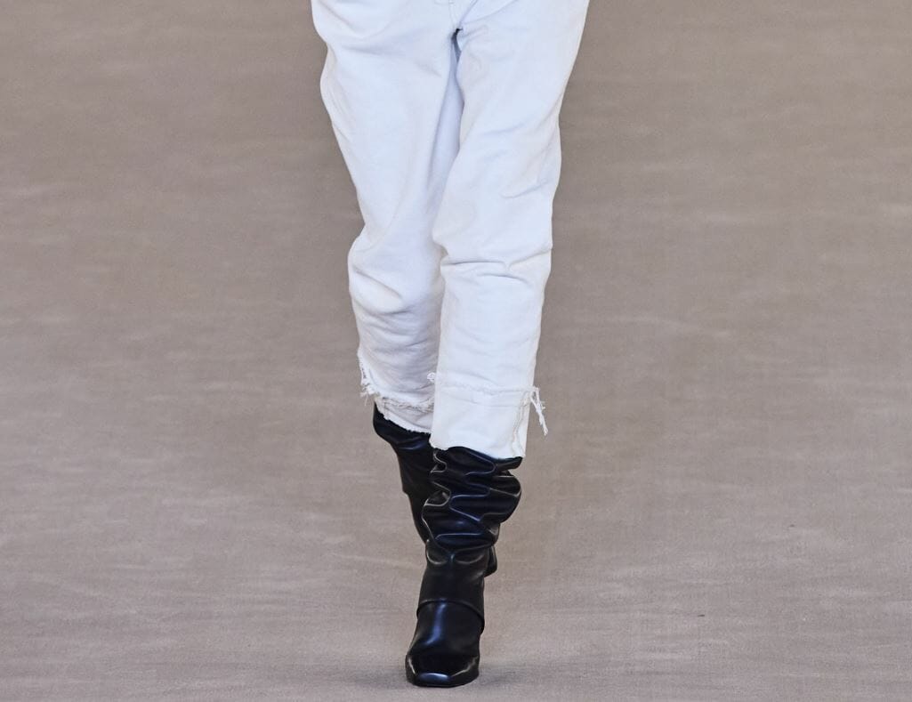 Il grande ritorno dei pantaloni dentro agli stivali che non si vedeva forse da un decennio così accentuato.